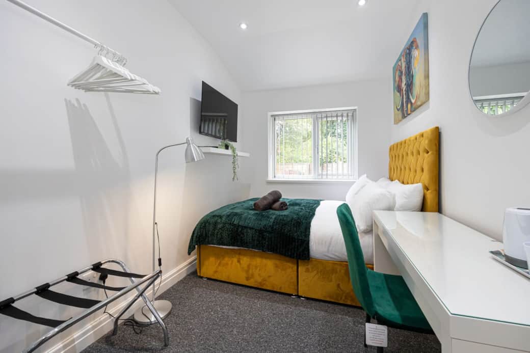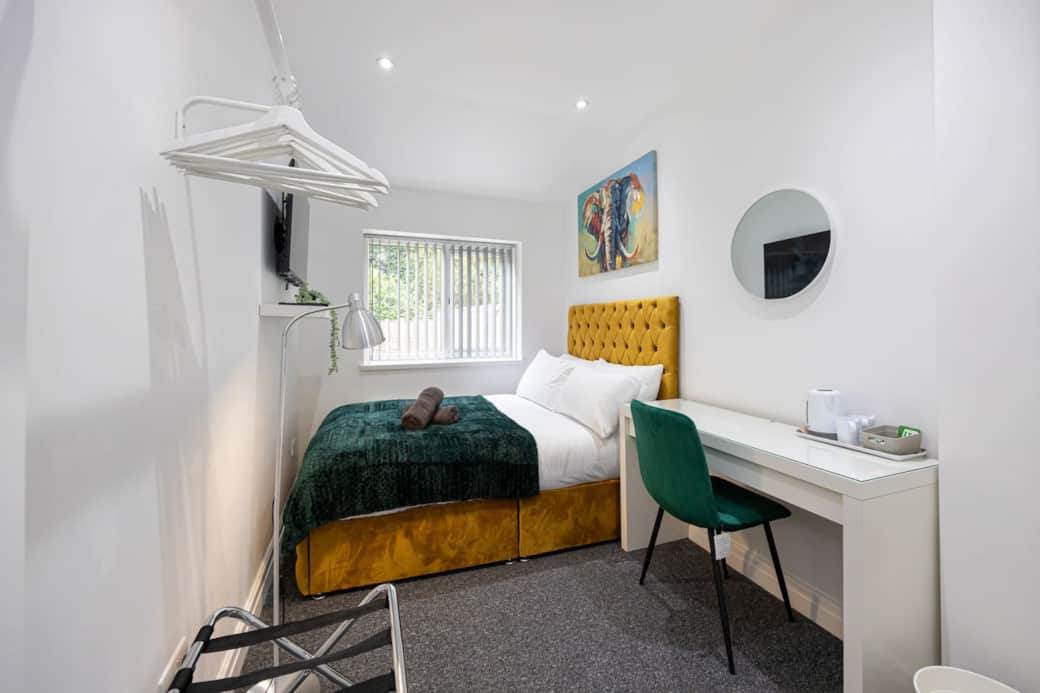Experience the ultimate in luxury and comfort at The Kent, a stunning property featuring seven luxury bedrooms with parking and private outdoor garden space, perfect for group stays or large families and solo travellers. Nestled in the vibrant area of Rusholme, within close proximity of The Curry Mile, universities, Manchester Royal Infirmary and Manchester City Centre. The Bedrooms: Each of the seven double bedrooms is designed with your comfort in mind. Enjoy the privacy of your own en suite bathroom, complete with high-end fixtures, plush towels, and complimentary toiletries. The bedrooms boast elegant decor, premium bedding, and ample storage space, ensuring a restful night's sleep. Communal Spaces: The heart of the house is its spacious, communal kitchen and living area. The fully equipped kitchen features top-of-the-line appliances, perfect for preparing gourmet meals or quick snacks. Gather around the large dining table for meals or socializing. The living area offers a cozy space to relax, with comfortable seating and a large-screen TV for entertainment. Outdoor Luxury: Step outside to the luxurious garden area, a private oasis designed for relaxation and enjoyment. Whether you're sipping your morning coffee, having a barbecue, or simply soaking up the sun, the beautifully landscaped garden provides the perfect backdrop. The guests will have a communal entrance with access to shared kitchen/living area but guests will have their own private bedroom with en suite shower room. We are contactable throughout your stay for any queries/issues. Please note: There is parking available for up to 6 vehicles. Please check we a space is available for you if parking is required. Please note: We have 4 double en suite bedrooms, 1 single bedroom with a dedicated en suite across the landing and 2 further bedrooms to the top floor with a shared bathroom (you are only sharing with one other guest). Please make sure you are aware of which room you are booking at the start of your reservation. Please note: Access through the front door is via keyless entry, once in the porch area you will be given a separate code to access your dedicated room key box.